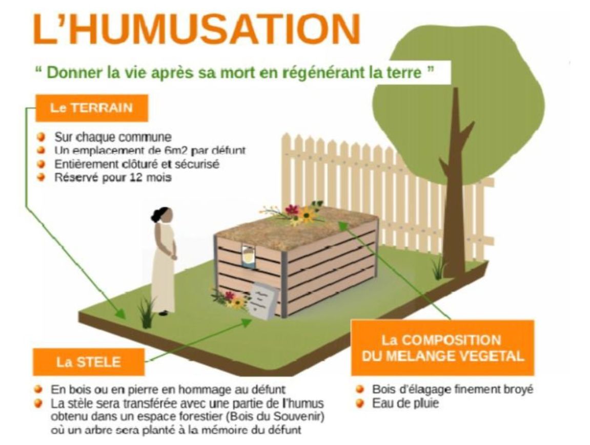 Pour rappel, contrairement à l’enterrement et à l’incinération, l’Humusation® crée un humus riche,utilisable pour régénérer les terres.