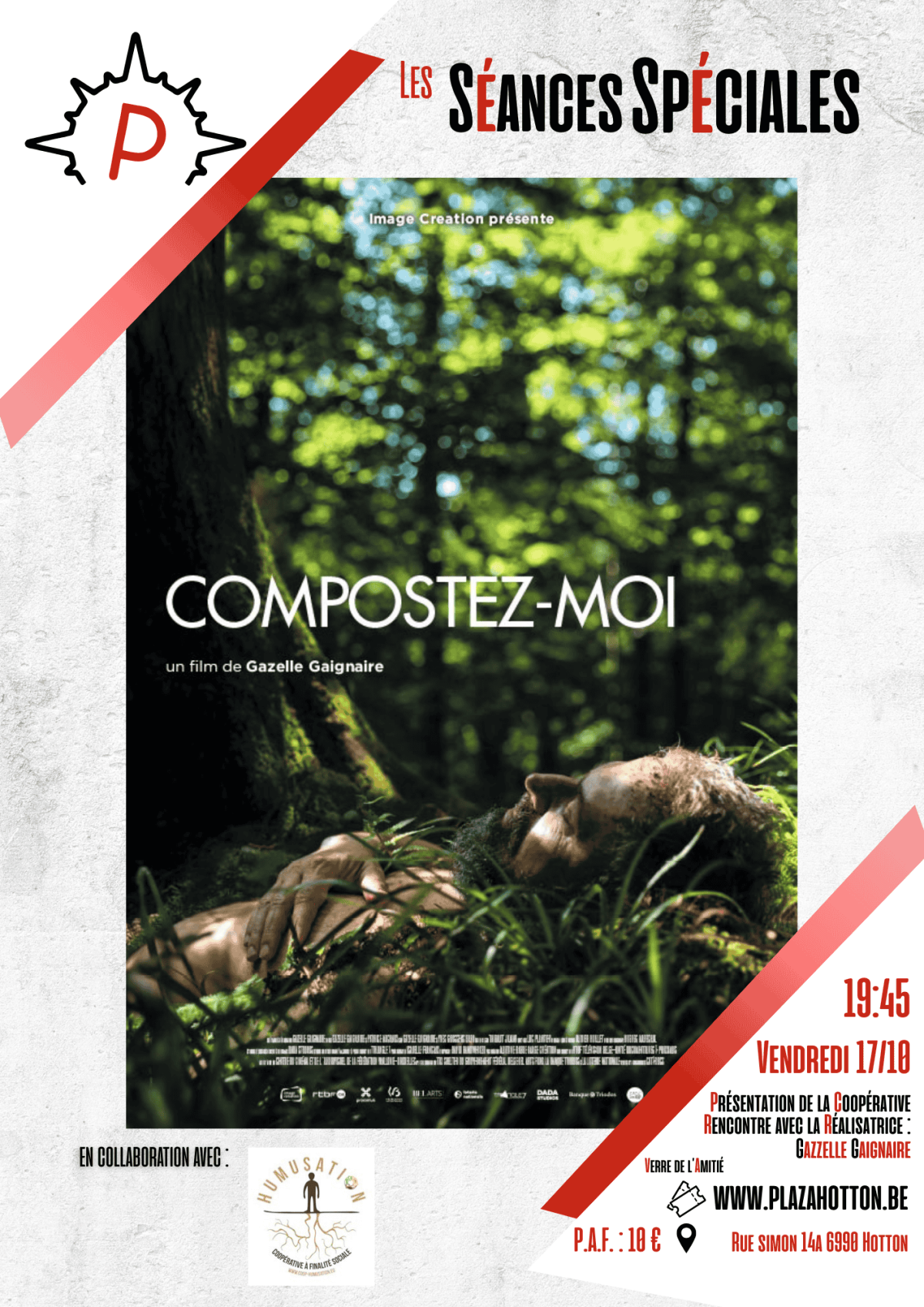 Le reportage « Compostez-moi » de Gazelle Gaignaire (2024) sera projeté en début de soirée, il contient plusieurs séquences filmées sur notre site d’expérimentation d’humusation ® en Wallonie (essais avec des dépouilles de porcs). Il présente aussi ce qui se fait dans d’autres pays comme aux Etats-Unis et en Allemagne où des techniques assez proches mais plus complexes sont déjà légalisées ou en test.