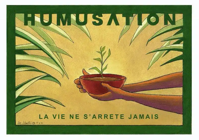 Et si, à travers les rites funéraires, l’être humain retrouvait son lien originel avec l’humus, source de toute vie ? Compostage humain, humusation, terramation : autant de pratiques funéraires prometteuses, déjà adoptées dans certains pays comme l’Allemagne et les États-Unis, sur lesquelles nous pourrions doucement nous reposer à l’avenir. Les rituels, essentiels pour accompagner le deuil, peuvent s’adapter à ces méthodes, honorant à la fois la mémoire des défunts et le retour au temps long, celui du passage, de la traversée du deuil. Ces pratiques invitent à repenser notre lien avec la mort et la terre. Là où nous sommes en quête de sens dans nos vies, notre corps pourrait donner du sens à celle-ci. Le compostage humain n’est pas simplement une disposition finale, mais un acte en faveur du vivant.