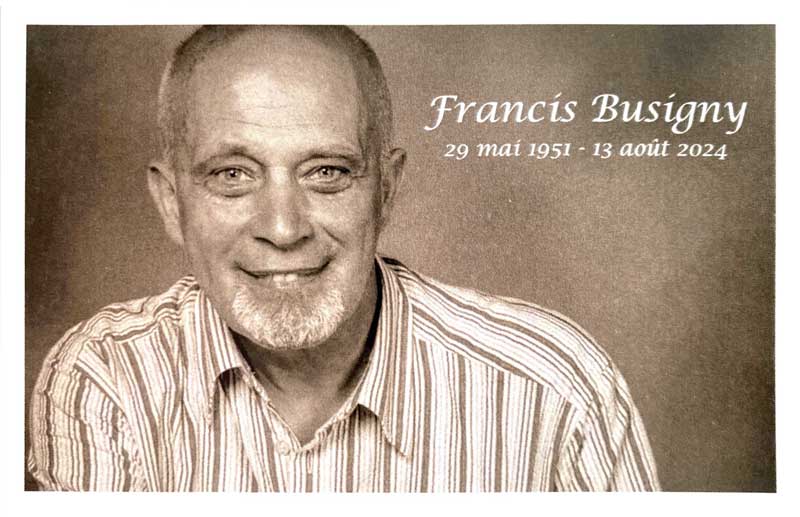 Francis Busigny, co-fondateur de la Fondation Métamorphose (Fondation d'Utilité Publique en Belgique) et de notre coopérative Humusation®, notre mentor, allié et ami est décédé le 13 août 2024.